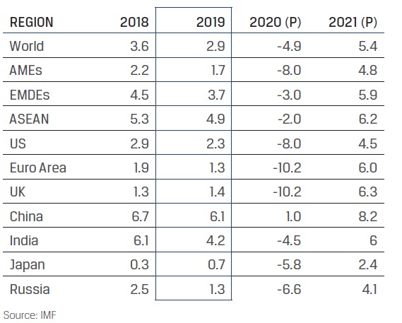 (Source: World Economic Outlook, International Monetary Fund, June 2020; World Trade Organisation)