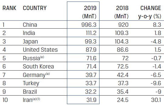 JSW STEEL'S RANK AMONG THE TOP 35 WORLD-CLASS STEELMAKERS