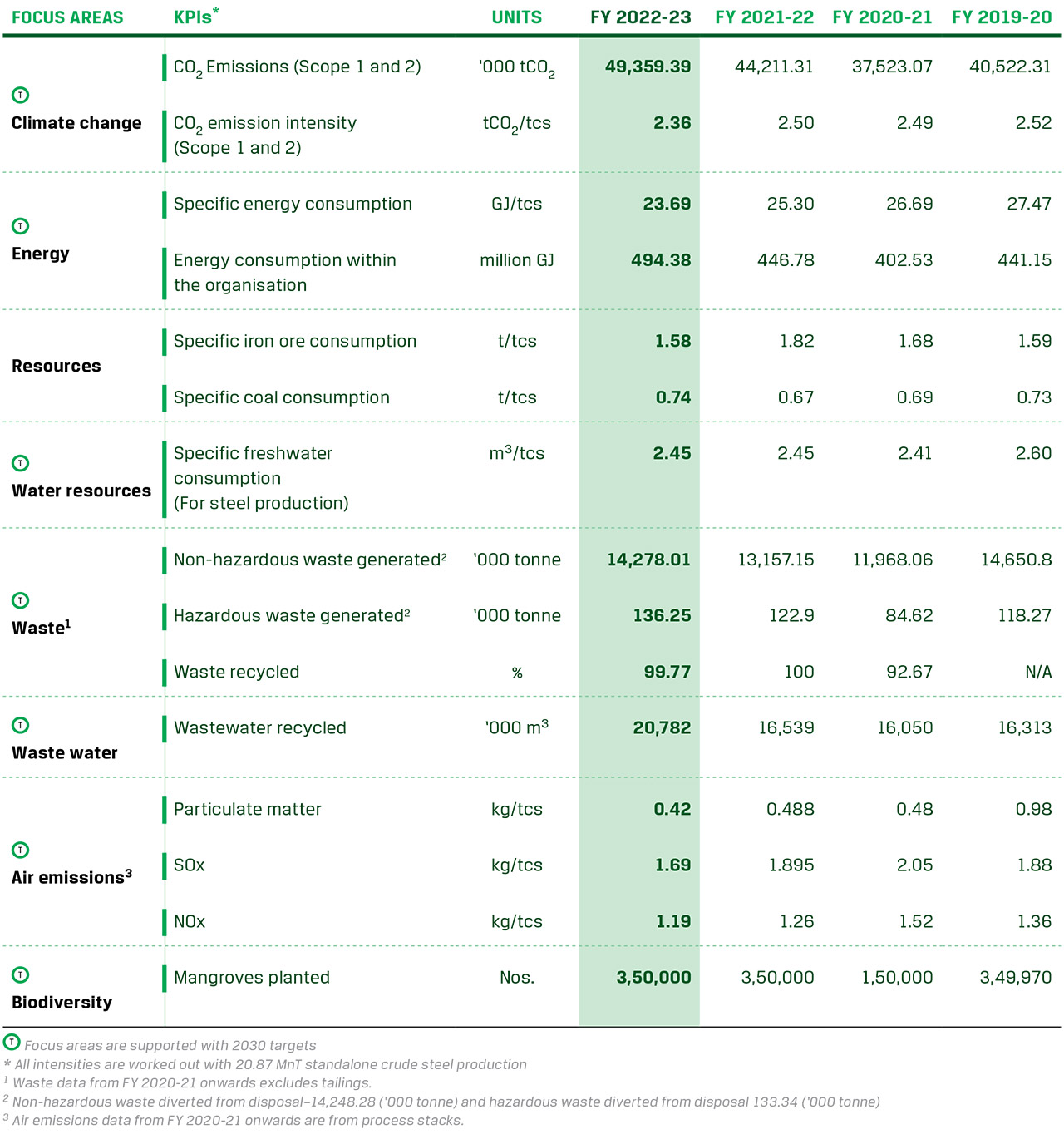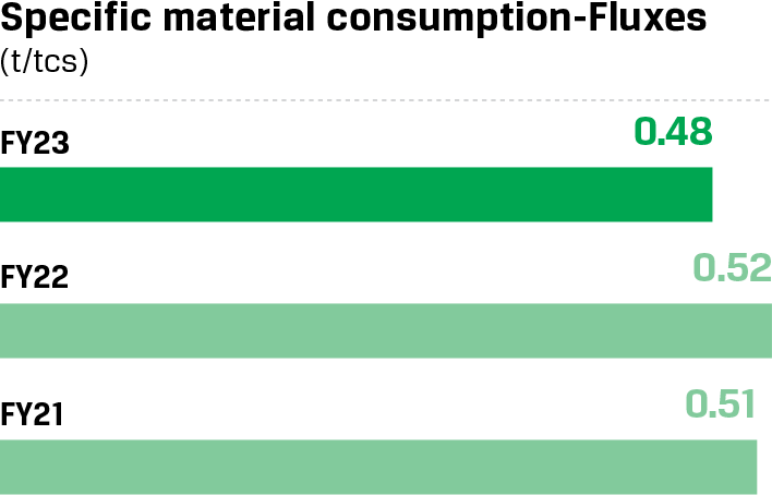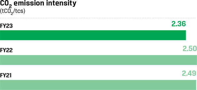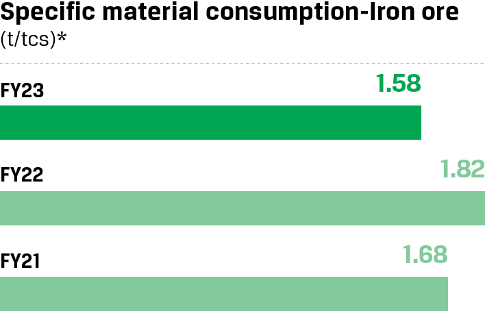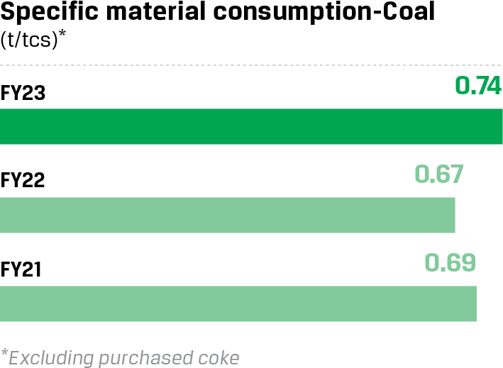 We have adopted a target of reducing CO2 emission intensity to less than 1.95 tCO2/tcs by 2030 for three ISPs, a target that is over and above the current decarbonisation target of 2.2-2.4 tCO2/tcs (in the BF-BOF route) adopted by the Ministry of Steel.