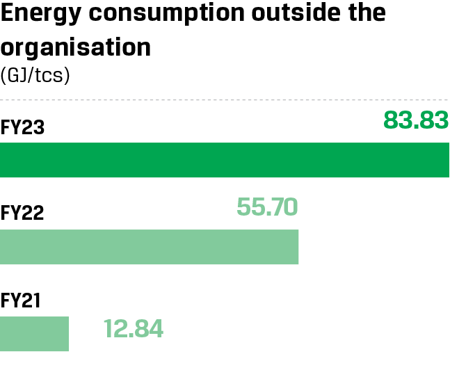 We have established a partnership with Shell India Markets Private Limited to jointly evaluate short and long-term options for improving energy efficiency, optimising demand for carbon-intensive products and services, adopting decarbonisation technologies, and leveraging digital solutions. Furthermore, we are collaborating with organisations such as the SMS Group and Smartex to explore and evaluate cutting-edge technologies and their potential applications in accelerating climate action.
