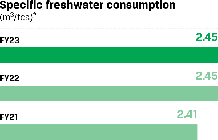 Reduce specific water consumption to 2.21 m3/tcs*