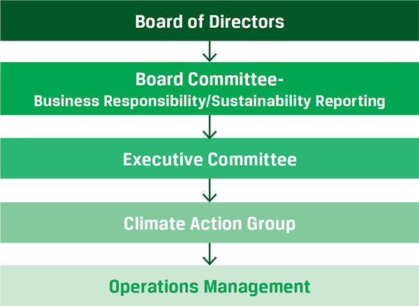 At the Board level, the Business Responsibility/Sustainability Reporting Committee and the Risk Management Committee review climate-related matters during biannual Board meetings. These committees collaborate through open communication channels and report to the Board of Directors. The CSR committee is also involved in supporting low-carbon strategies. At the management level, the Executive Committee, Climate Action Group, and corporate function teams oversee climate-related matters. We have a dedicated climate change policy with focus on preventing causes, mitigating impacts, and building resilience to climate change.