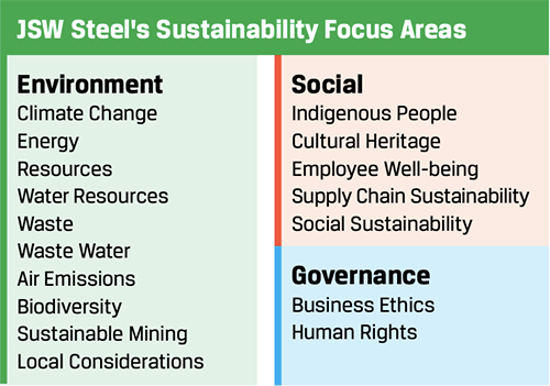 JSW Steel has firmly integrated sustainability into its fundamental business growth strategy, placing significant emphasis on Environmental, Social, and Governance (ESG) considerations. With a comprehensive approach, the Company has identified and established 17 focus areas supported with specific policy commitments to enhance year-on-year performance. Through a series of initiatives, the Company is consistently reducing its environmental impact, leveraging its technological advancements and innovation to deliver sustainable products. Guided by a well-defined sustainability framework, JSW Steel is creating a Better Everyday for all its stakeholders.