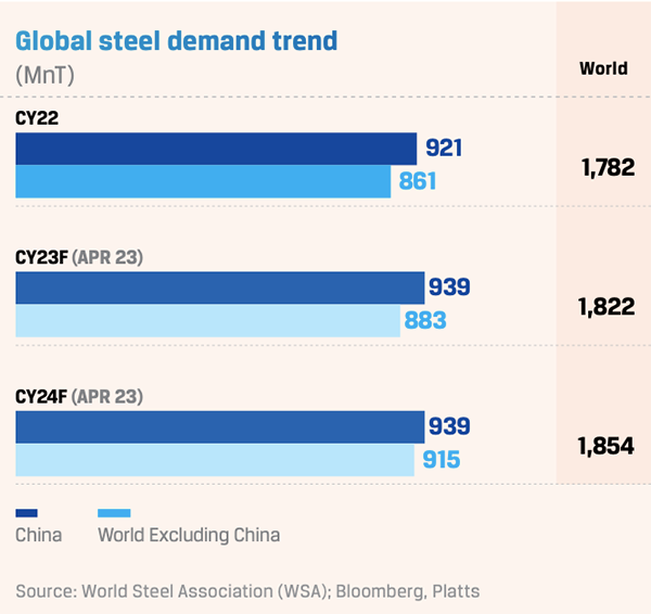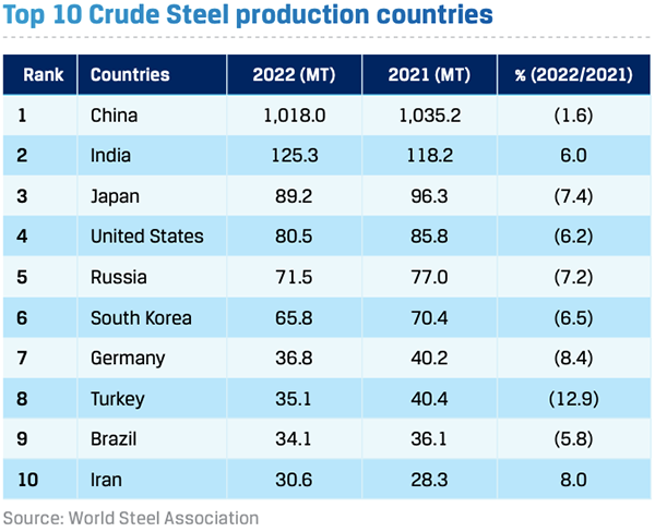 During CY 2022, global steel demand growth remained flat year-on-year, weighed down by aggressive interest rates by major central banks, and China staying off the market to curb a spike in COVID-19 cases by adopting a stringent ‘Zero Covid’ policy.