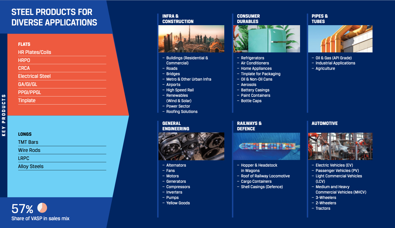 Moreover, JSW Steel has one of the largest distributor and retailer networks in India, with a distinct customer base.