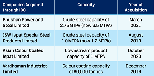 JSW Steel is part of strategic joint ventures and has acquired equity interests in various entities, enabling it to add more value-added products, enhance its global footprint, secure raw materials, achieve backward integration and increase its technological know-how. It has also pursued unique opportunities in stressed assets in niche markets.