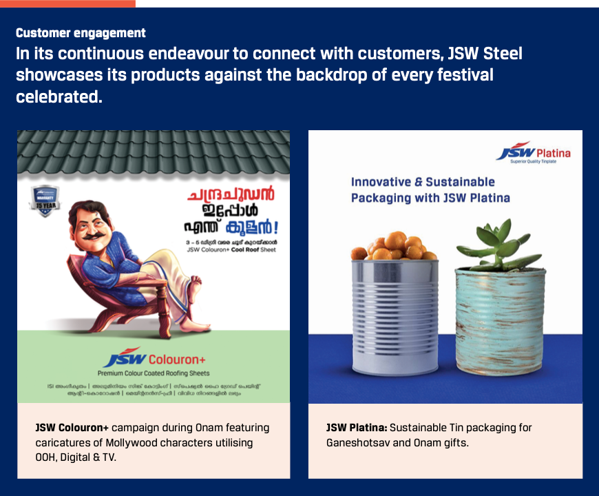 A joint venture with Marubeni-Itochu Steel (JSW MI Steel Service Centre Private Limited) will see the Company set up steel service centres in North and West India to provide just-in-time solutions to the automotive, white goods and construction sector.