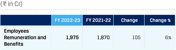 Employee benefits expenses were higher in FY 2022-23. This was due to annual increments and ESOP charge on account of new ESOP 2021 grants, which was partially offset by the reversal of provisions related to leave encashment following the revisions to leave policies. The overall headcount increased to 13,884 as on March 31, 2023, from 13,474 as on March 31, 2022.