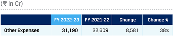 Manufacturing and other expenses increased 38% y-o-y to ₹31,190 crore primarily on account of increase in production by 18%, higher power and fuel cost and higher freight expenses due to increase in volumes.