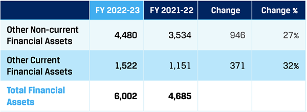 Increase in other financial assets was primarily due to increase in the GST incentive receivable from the state of Maharashtra and Karnataka and additional placement of security deposit for service contracts and accrual of interest income on loans provided to certain overseas subsidiaries.
