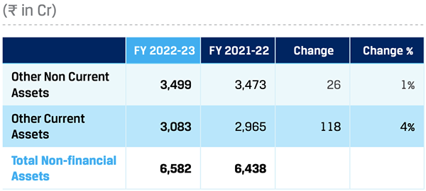 Increase in other non-financial assets was primarily due to accumulation of GST input tax credit, increase in the advance to suppliers for raw materials and other supplies due to increase in raw materials cost owing to increase in commodity prices.