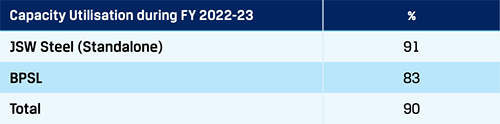 However, domestic steel demand remained strong on the back of the Government's infrastructure spending push and buoyant housing and construction sectors. JSW Steel is confident about India’s long-term infrastructure-led growth story, with low per capital steel consumption providing significant growth headroom for the domestic steel industry. At the end of FY 2022-23, capacity utilisation levels were at 90%, aided by a 13.3% y-o-y growth in Indian steel demand to 119.9 MnT.
