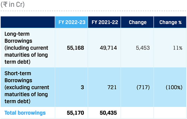 Long-term borrowings (including current maturity of long-term debt) increased primarily due to drawal of rupee term loans and issuance of Non-convertible Debentures to incur capital expenditure and general corporate purposes. The Company repaid short-term loans in view of the cash surplus available at the end of the year.