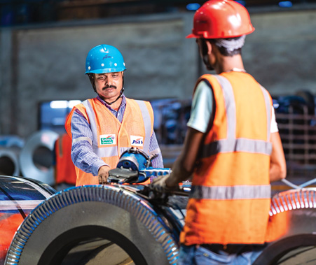 At JSW Steel, we believe 'safety is everyone's responsibility'. We strive to improve our safety performance based on the ISO 45000 standards, the British Safety Council's Occupational Health, Safety, and Wellbeing Management Standards (55 Elements) and DuPont Safety Standards.