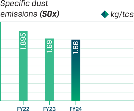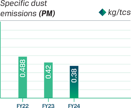 In our ongoing pursuit of enhanced emissions control, we have integrated stateof-the-art systems like the MEROS (Maximised Emission Reduction of Sintering) system into our manufacturing facilities. This advanced technology specifically targets emissions from the sintering process, a notable contributor to air pollution. Additionally, we have made significant investments in advanced scrubbing, dedusting, and filtration systems to further minimise emissions.