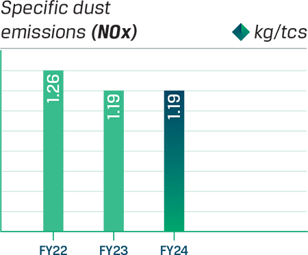 We are committed to combating air pollution by optimising our operations and curbing emissions. Our strict adherence to emission regulations ensures that our emissions consistently meet legal standards, with a continual proactive drive to surpass these benchmarks.
