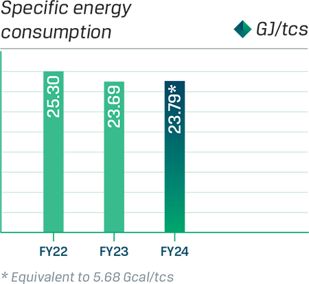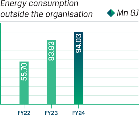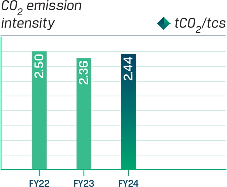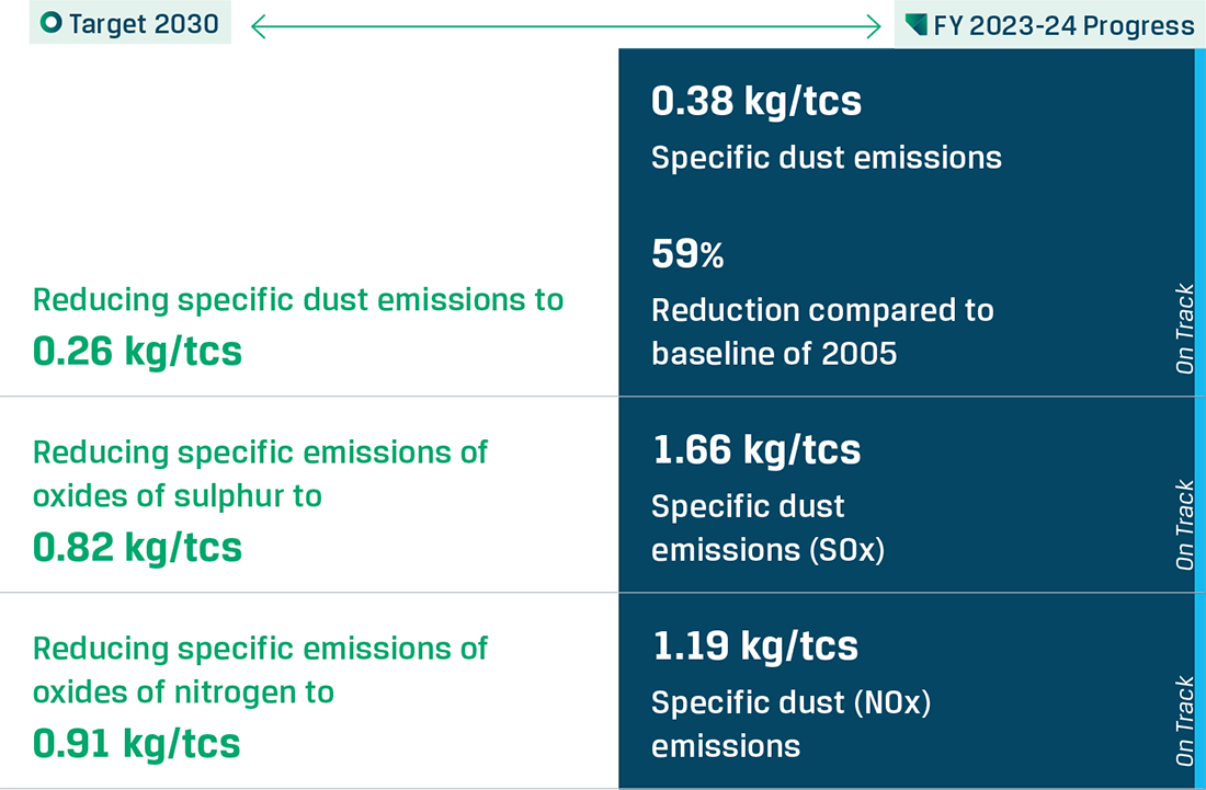 Over the past year, significant strides have been made through the execution of nine comprehensive workshops across various departments, engaging over 200 attendees. These workshops facilitated the identification and initiation of more than 175 initiatives, spanning critical areas such as fuel and power consumption reduction, waste heat recovery, circularity, alternate fuels, digital analysis, renewable energy integration, and scrap charging. Furthermore, we established 10 Climate Action Centres to provide focal points for sustainability initiatives across our operations. In line with our commitments, 20 initiatives were successfully implemented in the reporting year, resulting in 60 kg/tcs of CO2 emissions reduction.