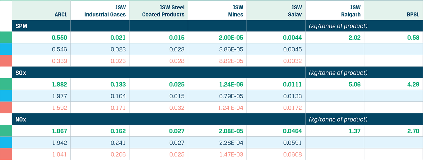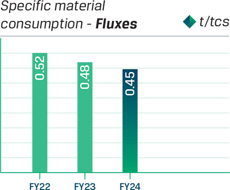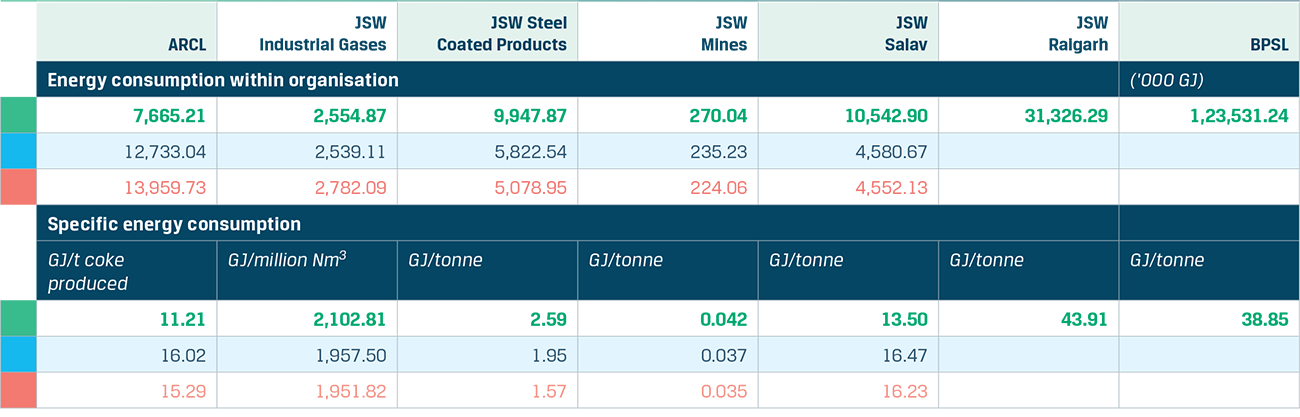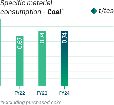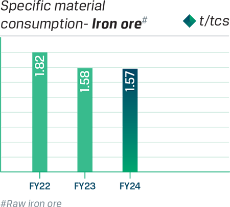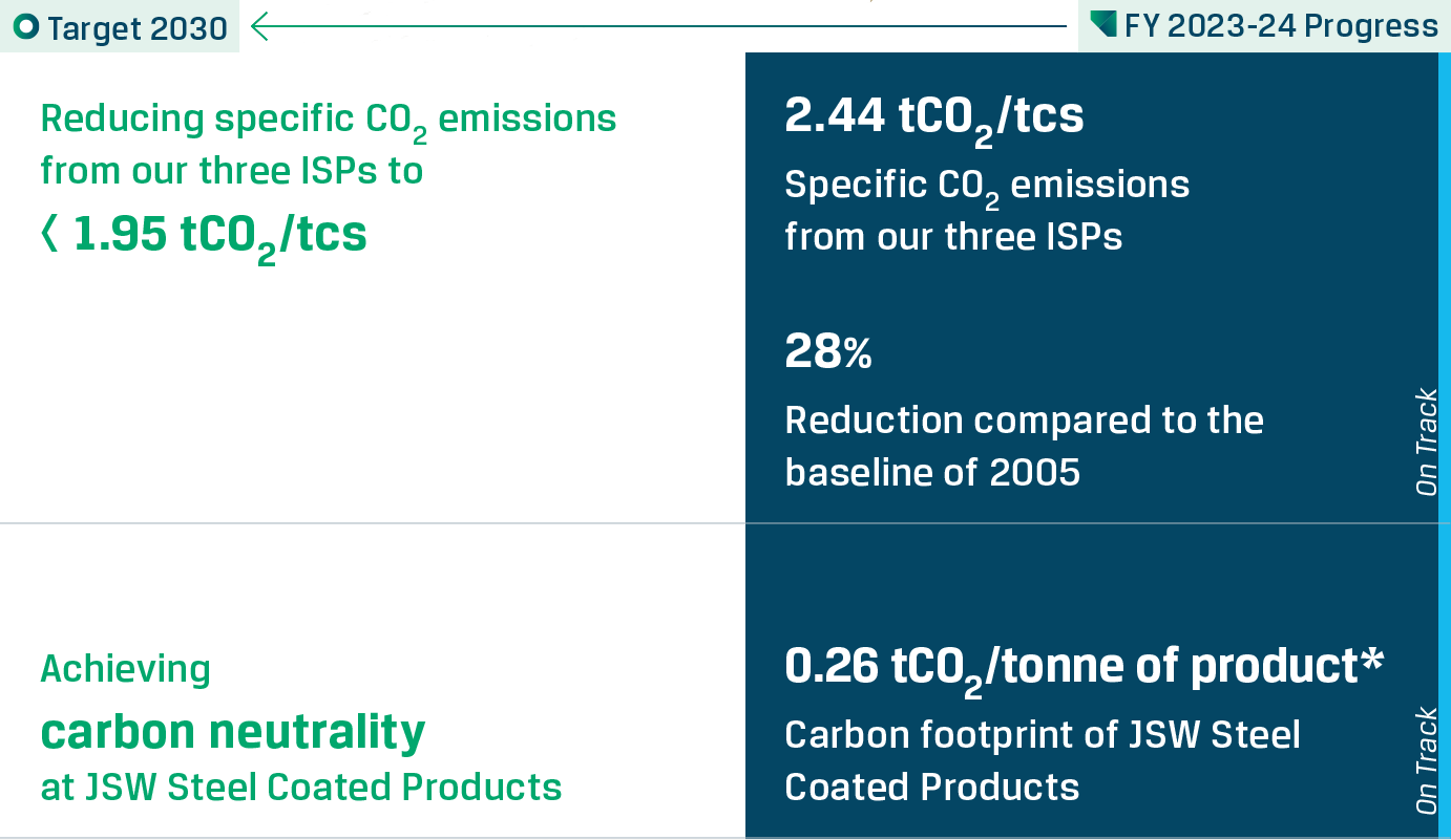 Note: All intensities are worked out with 21.76 MnT standalone crude steel production. Progress figures are for integrated operations of JSW Steel standalone, excluding Raigarh plant