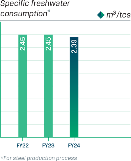 Our Vijayanagar plant has launched a comprehensive water stewardship initiative aimed at maximising effluent treatment and increasing the use of treated water from sewage treatment plants. This approach includes immediate actions and long-term technological advancements to conserve and recycle water resources.