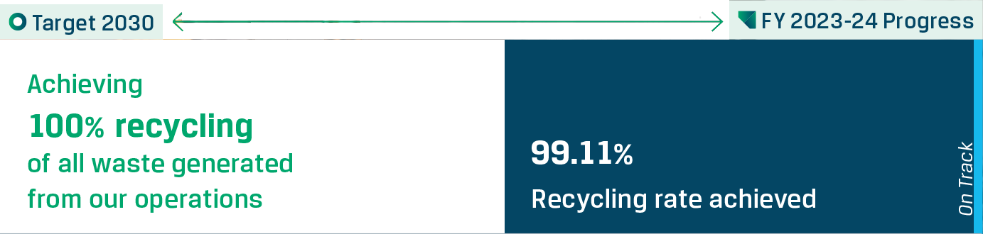 Our integrated waste management strategy takes into account environmental impact, social ramifications, and commercial viability. Aligned with the widely accepted 'waste management hierarchy', our approach follows a sequence of prevention, reuse, recycling, and disposal. Additionally, we have adopted a 'Zero Waste to Landfill' ethos, which involves vigilant monitoring and optimising resource utilisation, alongside exploring alternative applications for waste generated.