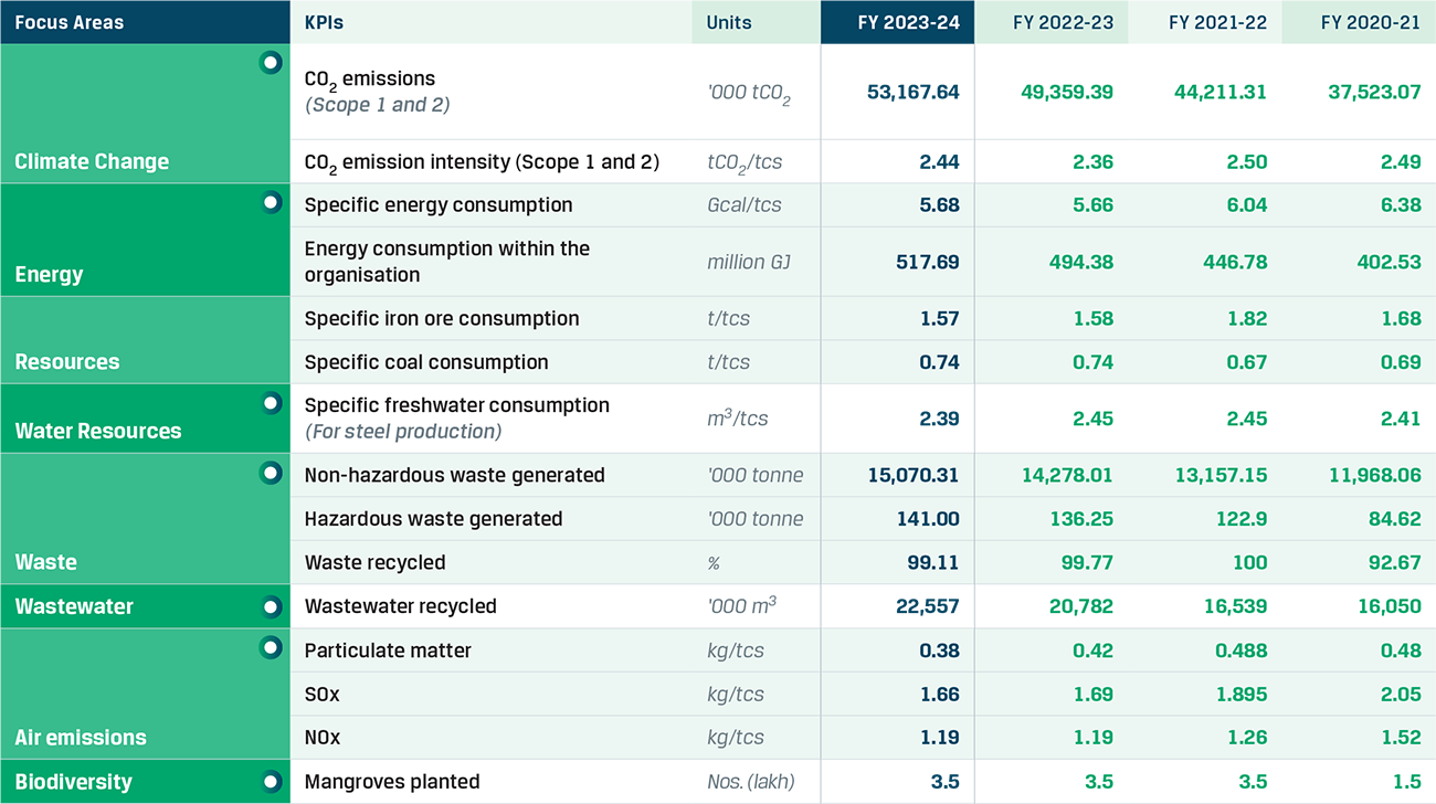 Additionally, we have obtained Environmental Product Declarations (EPDs) for all 14 finished products from three of our integrated steel plants and five finished products from three downstream plants. EPDs enable us to transparently communicate environmental information to customers, offering reliable and standardised insights into our products' lifecycle. We firmly believe that sustainable practices are not only essential for value creation but also offer significant long-term benefits for all stakeholders.