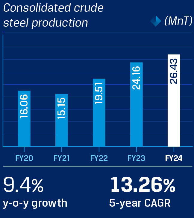 JSW Steel is one of India’s leading integrated and geographically diverse steel manufacturers. Our goal is to partner in India’s growth story by supplying steel for vital infrastructure projects, providing value added steel solutions through innovation while investing in sustainability and improving the well-being of the broader community.