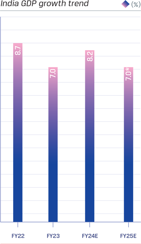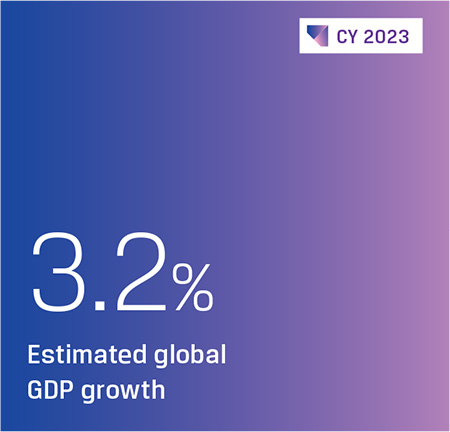 The global economy demonstrated strong resilience, navigating multiple headwinds such as the ongoing Russia-Ukraine war, escalating geopolitical tensions in the Middle East, and the cost-of-living crisis in several economies. The International Monetary Fund (IMF) in its World Economic Outlook (WEO) April 2024 estimated global GDP growth at 3.2% for 2023, which was an upward revision of 0.1% point from its January 2024 update, driven by strong private consumption and government spending initiatives, particularly in the US and many emerging market economies. The services sector demonstrated strength, but manufacturing activity remained subdued.