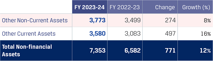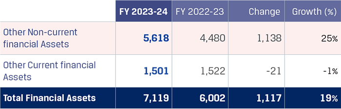 The other non-current financial assets increased to `5,618 crore on account of increase in the GST incentive receivable from the state of Maharashtra and Karnataka, and the increase in accrued interest income on loans extended to certain overseas subsidiaries.
