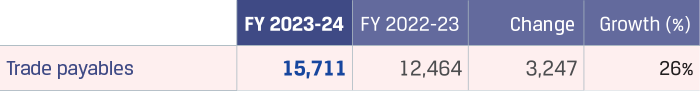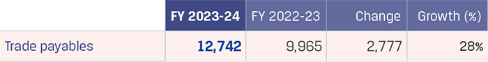 Trade payables increased by `2,777 crore to `12,742 crore primarily due to increase in creditors for goods.
