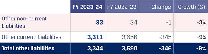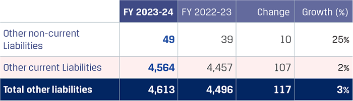Other current financial liabilities increased by `50 crore to `5,939 crore primarily on account of increase in interest accrued but not due on borrowings, higher provisions for marketing rebates which was partially offset by the decrease in retention money payable for capital expenditure.