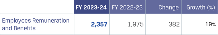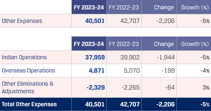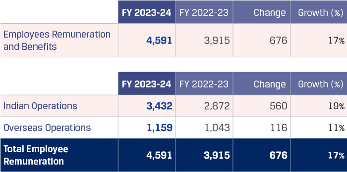 Employee benefits expenses for overseas operations were higher by `116 crore at `1,159 crore in FY 2023-24. The increase was primarily due to annual increments provided to employees, increase in overall headcount due to increase in capacity utilisation. The overall headcount increased to 25,550 as on March 31, 2024 from 23,587 as on March 31, 2023.