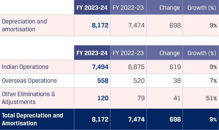 Depreciation and amortisation increased by 9 % y-o-y to `8,172 crore primarily due to