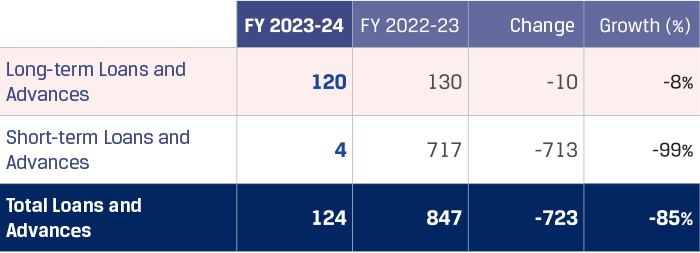 Loans and advances decreased by `723 crore primarily due to the redemption of ICD given by JSW Coated by `505 crore, and cancellation of loans pursuant to merger of CSSL & JISPL with the Company effective July 31, 2023