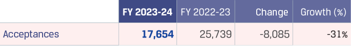 Acceptances decreased by `8,085 crore to `17,654 crore during FY 2023-24 due to decline in coking coal prices and repayment of acceptances.