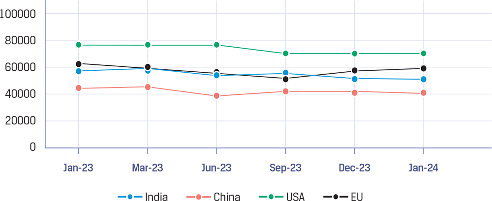 In advanced economies, growth is anticipated to marginally increase, primarily driven by a recovery in the Euro area following a period of sluggish growth in 2023. In contrast, emerging market and developing economies are poised for stable growth, albeit with regional disparities. Monetary policy expectations vary across major economies, with projections indicating a mix of adjustments. The US Federal Reserve is likely to cut its policy rate, alongside similar moves by the Bank of England and the European Central Bank. Japan is expected to gradually increase policy rates, reflecting growing confidence in achieving sustainable inflation targets. In China, domestic demand remains lacklustre and is likely to remain so unless strong measures and reforms address the root cause. With depressed domestic demand, surplus could arise, which will further impact trade tensions in an already tense geopolitical environment.