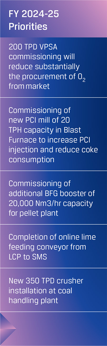 JSW Steel’s strategically located operations, state-of-the-art manufacturing, captive resources, and resilient business model have enabled the Company to establish itself as a leader on the global conversion cost curve. Further, the Company remains focused on strengthening its backward integration to optimise costs and reduce external dependencies. In addition, JSW Steel is leveraging technology, analytics as well as its innovation capabilities to further improve efficiencies.