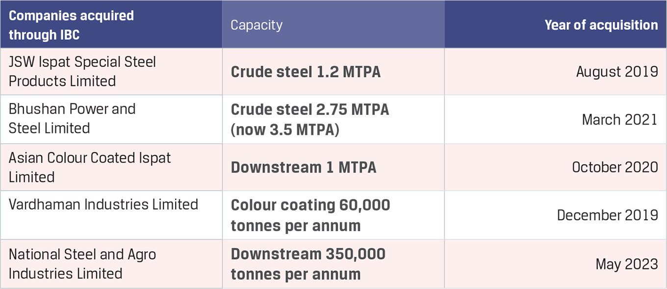 JSW Steel also has a joint venture with Marubeni-Itochu Steel (JSW MI Steel Service Centre Private Limited) to set up steel service centres in north and west India for just-in-time solutions for the automotive, white goods and construction sectors. The Company has also pursued unique opportunities in stressed assets in niche markets.