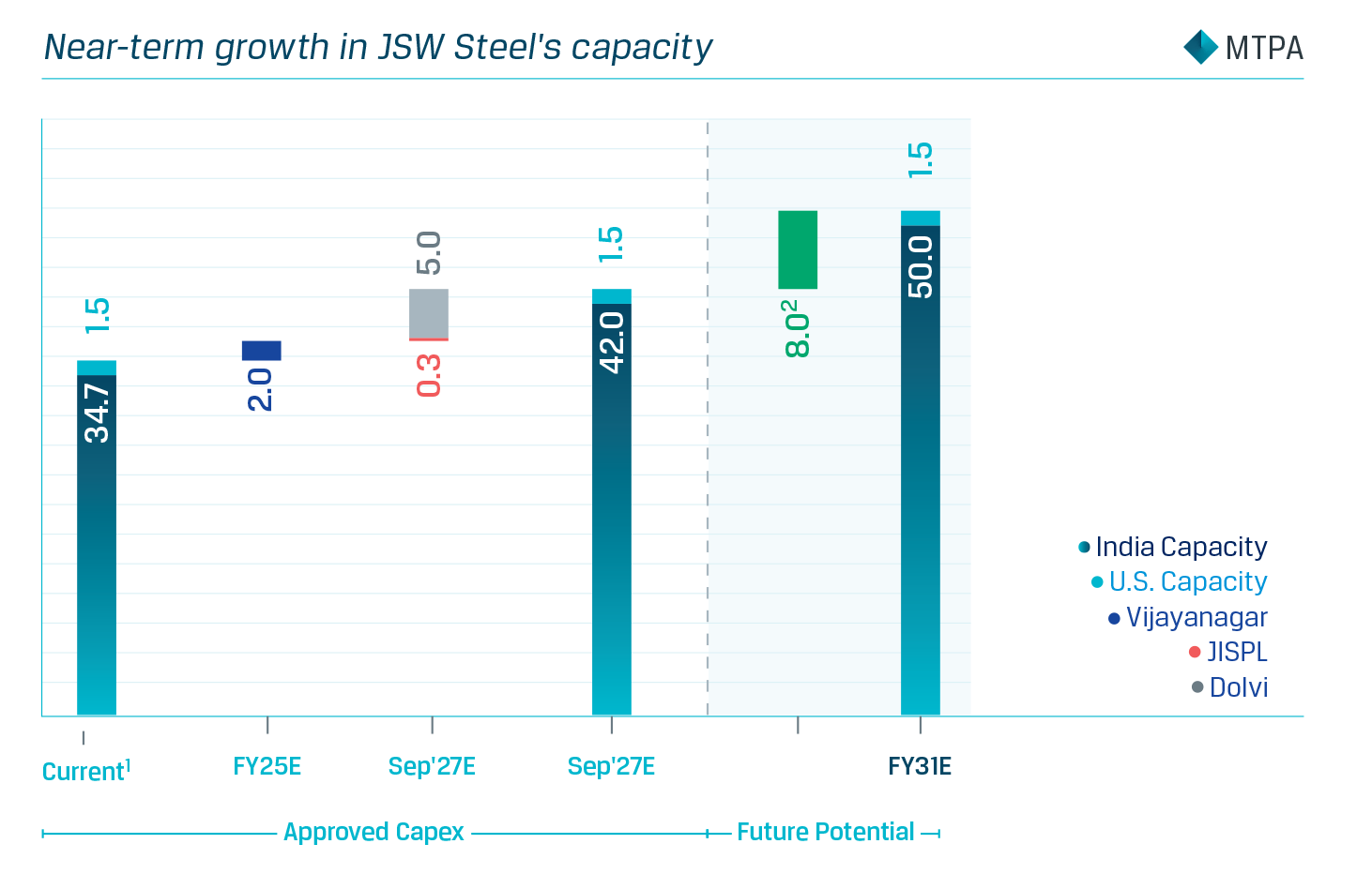 1: India capacity of 6.5 MnT under commissioning 2: Subject to Board approvals