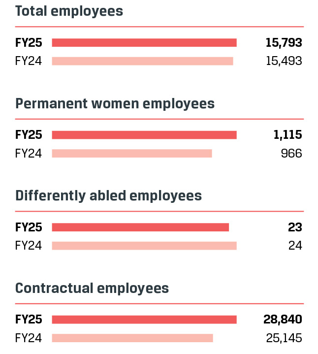 In line with our broader strategy to lead in the Industry 5.0 era, we continue to strengthen our digital learning ecosystem as a core enabler of business transformation and human capital development. In FY 2024–25, we recorded over 89,468 digital learning hours, with 14,565 unique learners actively engaging in self-paced and structured development programmes across our Company. Our digital learning approach is anchored in strategic partnerships, personalised learning journeys, and immersive experiences that build critical future-ready capabilities.