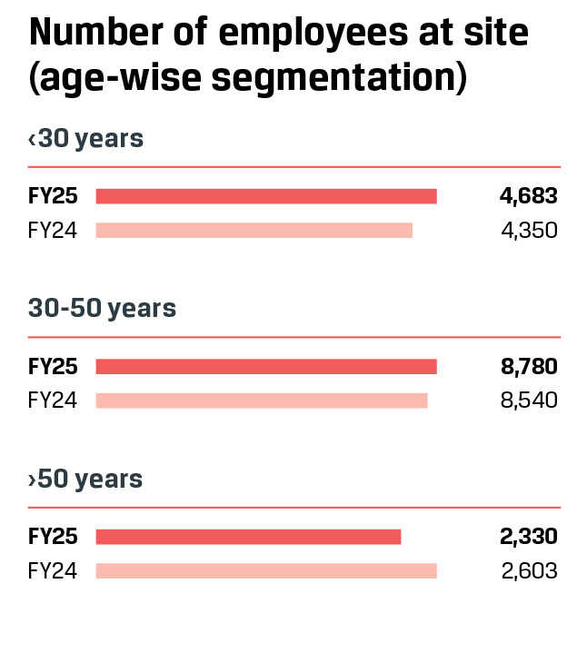 To reinforce leadership capabilities and ensure long-term success, we established Plant Talent Councils across the Steel business, covering over 800 middle management employees. These councils reviewed and calibrated talent, identified high-potential individuals, and mapped development areas for each employee. This represents a focused step towards building a future-ready leadership pipeline and driving the talent agenda at the grassroots level.