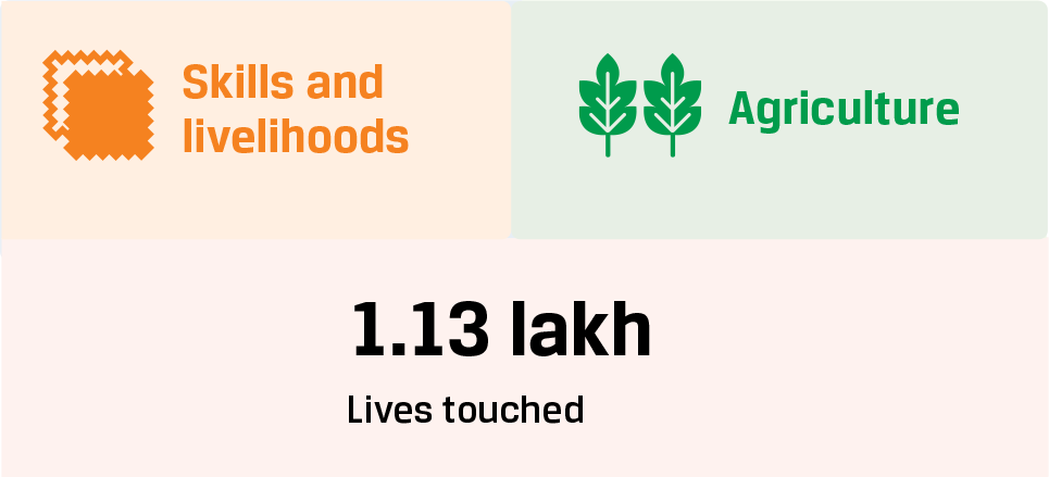 We work closely with farmers across India, supporting them through value chain development, new technologies and methodologies for farming, and marketing support. By reducing input costs, increasing crop productivity, and strengthening market linkages, we have supported 100,000 farmers in partnership with Farmer Producer Organisations (FPOs) to build lasting resilience.