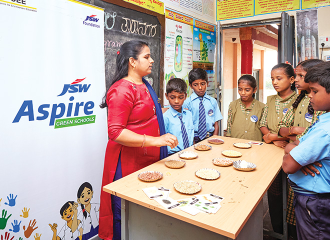 At JSW Foundation, we are deeply committed to transforming primary and secondary education by nurturing both learners and educators. Our flagship program, JSW ASPIRE, strengthens literacy, numeracy, and life skills among adolescents, empowering them to grow into confident, resilient individuals. Initiatives like Room to Read and the Green School Project cultivate a reading culture and environmental responsibility. We also encourage students to showcase and develop their artistic and academic talents through competitions and science exhibitions. To deepen our initiative's impact, we equip government teachers with the tools and training needed to make classrooms more engaging, inclusive, and inspiring for every student.