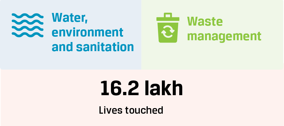 We strive to implement effective waste management systems while cultivating responsible, waste-wise communities. Our initiatives include awareness campaigns, door-to-door waste collection and infrastructure for safe segregation, composting and co-processing. We also promote waste upcycling and alternative livelihoods, helping communities derive greater value from waste sustainably.
