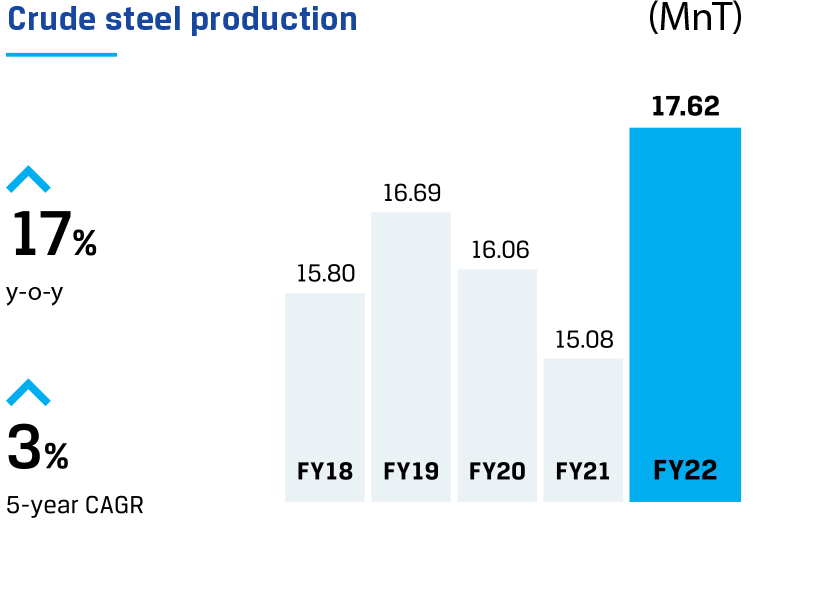 JSW Steel is India’s leading and one of the world’s most efficient integrated steelmakers. We are progressing responsibly across markets with innovation, digitalisation and sustainability as our key anchors. With efficient integrated operations and a clear vision for the future, we are executing our strategic growth plan in line with India’s increasing appetite for steel, to drive its sustainable development story.