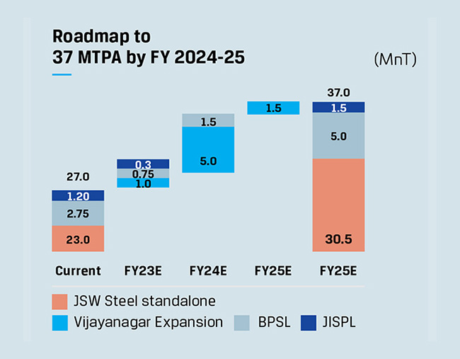 Aligned to these prospects, we have a near-term target of taking our domestic installed capacities to 37 MTPA by FY 2024-25. The expansion projects at Vijayanagar and Bhushan Power and Steel Limited (BPSL) will be key to executing this plan.