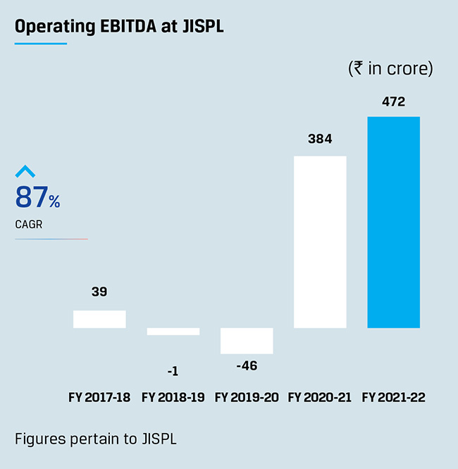 We pursue selective acquisitions that are value-accretive and/or strategically positioned to provide us a competitive edge through capacities, market access or value-addition competencies. During FY 2021-22, we were able to turnaround and improve the profitability of all our acquisitions, across ACCIL, VTPL, VIL and BPSL. JSW Ispat Special Steel Ltd. or JISPL (previously Monnet Ispat & Energy Limited) has also reported a net profit for FY 2021-22. We are increasingly looking at merging some of our businesses to simplify our governance structure.