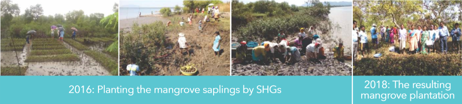 Regeneration of mangrove ecosystem by planting more than 23 lakh mangrove saplings bringing 450 hectares of degraded mangrove area under green cover.
