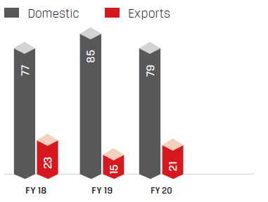 The Company’s wide product range provides the flexibility to calibrate the portfolio mix to market demand as well as economic cycles. The Company has been increasing the share of VASP to further improve margins. In FY 2019-20, VASP had ~48% share in the overall sales portfolio.