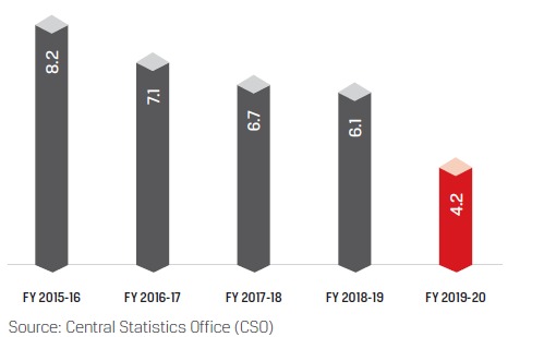 (Source: Second Advance Estimates of National Income and Expenditures on GDP – February 2020; Second Advance Estimates of Production of Foodgrains, Oilseeds and Other Commercial Crops for 2019-20, Economic Survey 2019-20, Bloomberg)