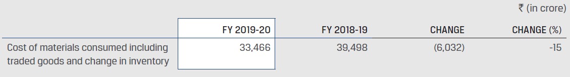 Over the years, JSW Steel has implemented several projects to reduce overall cost of production. With the same objective, the Company built the world’s largest conveyor system, which travels ~24 km from the captive mines to the Vijayanagar plant. The pipe conveyor, fully operationalised in early FY 2019-20, reduces carbon footprint (by 3.86 kg/tonne of CO2) and dust emissions while improving safety, as it eliminates cargo movement on roads. It also comes with significantly lower logistics cost compared with other modes of in-land transport. During FY 2019-20, ~3.39 MnT of iron ore was dispatched, generating savings of ` 56 crore.